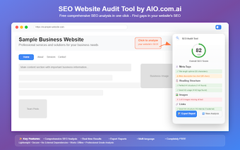 Narzędzie audytu SEO strony internetowej od AIO.com.aijest darmowym oprogramowaniem dla Chrome, które należy do kategorii 'Dodatki i narzędzia'.
